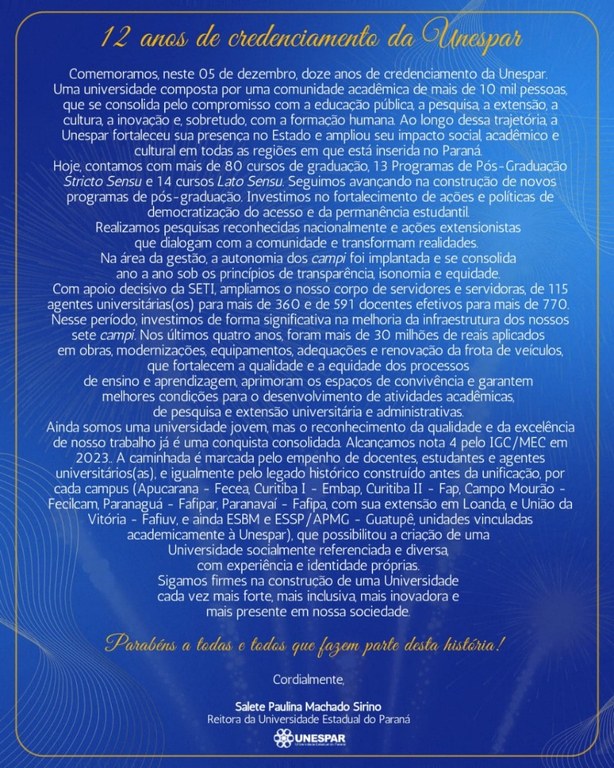 12 anos de credenciamento da Unespar